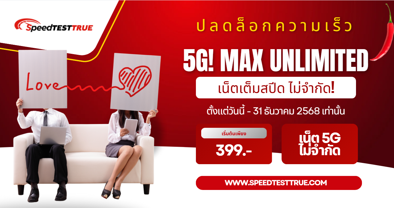 ปลดล็อกความเร็ว 5G! Max Unlimited เน็ตเต็มสปีด ไม่จำกัด! ตั้งแต่วันนี้ – 31 ธันวาคม 2568 เท่านั้น
